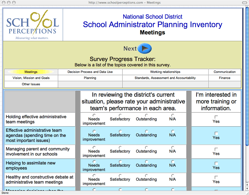 The School Perceptions API for Administrators is easy to take. Please note that this is a partial screen -- the image will not scroll.